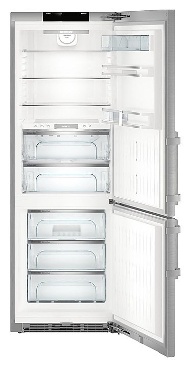 Двухкамерный холодильник Liebherr CBNes 5778 Premium серии BluPerformance предназначен для охлаждения и кратковременного хранения продуктов, полуфабрикатов и напитков, замораживания и длительного хранения свежих продуктов, а также для приготовления пищевого льда в частных домах, квартирах, отелях и офисах. Модель оснащена сенсорным TFT-дисплеем с высоким разрешением, позволяющим осуществлять индивидуальную настройку работы оборудования, а также выбирать готовые режимы для оптимального хранения продуктов. Боковые стенки выполнены из легированной стали с покрытием SmartSteel, дверь - из нержавеющей стали с покрытием SmartSteel, ручка - из алюминия.