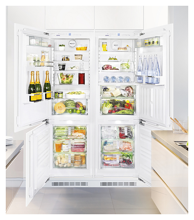 Встраиваемый холодильник Liebherr SBS 66I3 класса Premium предназначен для заморозки, охлаждения и длительного хранения продуктов и полуфабрикатов на предприятиях общественного питания и торговли. Модель оснащена сенсорным управлением, жидкокристаллическим дисплеем MagicEye и цифровой индикацией температуры. Внутренняя прокладка выполнена из полистирола, дверные полки - из стекла с отделкой из нержавеющей стали. Холодильная камера: