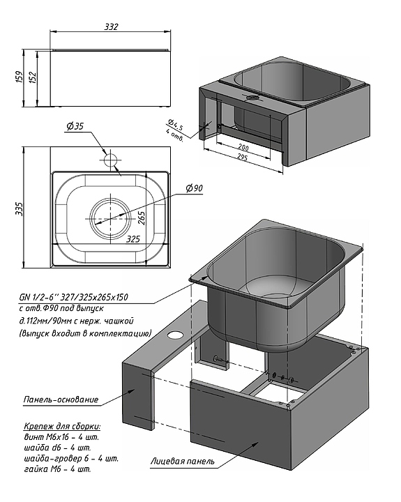 Рукомойник Техно-ТТ AppetiTT ВМ-Р1/403н используется в моечных цехах на предприятиях общественного питания и торговли. Модель оснащена платформой и отверстием для установки смесителя. Корпус и цельнотянутая моечная ванна выполнены из нержавеющей стали AISI 430. Дополнительные характеристики: