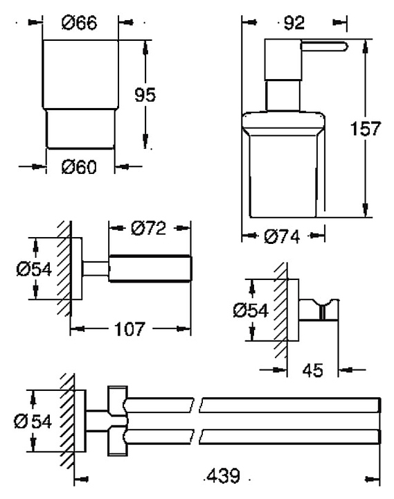 Набор аксессуаров 4 в 1 New Grohe Essentials 40846001 используется в ванных комнатах. Серию Essentials отличают лаконичный дизайн и уникальные материалы. Элегантные аксессуары этой коллекции идеально дополнят дизайн любой ванной комнаты. Модели имеют скрытые крепления и монтируются на стену. Изделия выполнены из стекла и металла с хромированным покрытием StarLight, устойчивым к царапинам и обеспечивающим блеск на много лет. Комплектация: