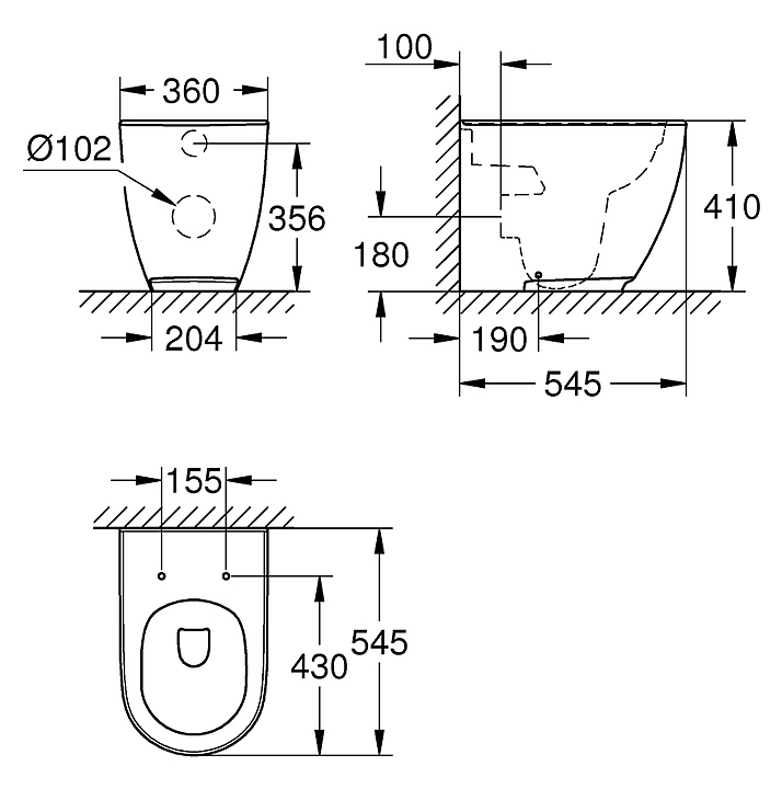 Унитаз приставной без бачка Grohe Euro Essence 3957300HGr