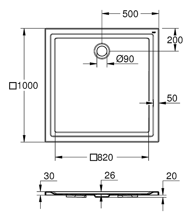 Душевой поддон Grohe 39300000Gr 100x100 см акрил