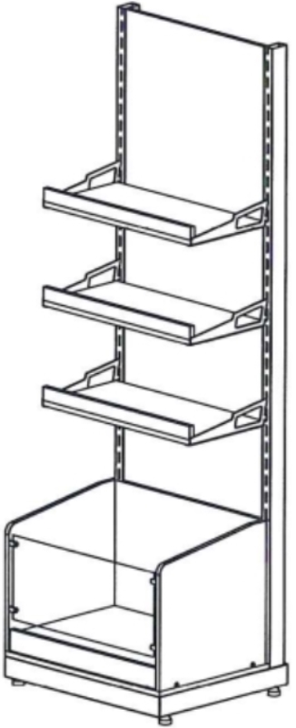 Стеллаж пристенный Carboma S6-20 04 со сплошными деревянными полками предназначен для демонстрации хлеба, батонов и других хлебобулочных изделий в магазинах, супермаркетах, кофейнях, а также на предприятиях общественного питания и торговли. Модель оснащена 3 полками и базовым ящиком. Изделие выполнено из МДФ, плинтуса - из нержавеющей стали, стойки обшиты выкрашенной в серый цвет сталью. Комплектация: