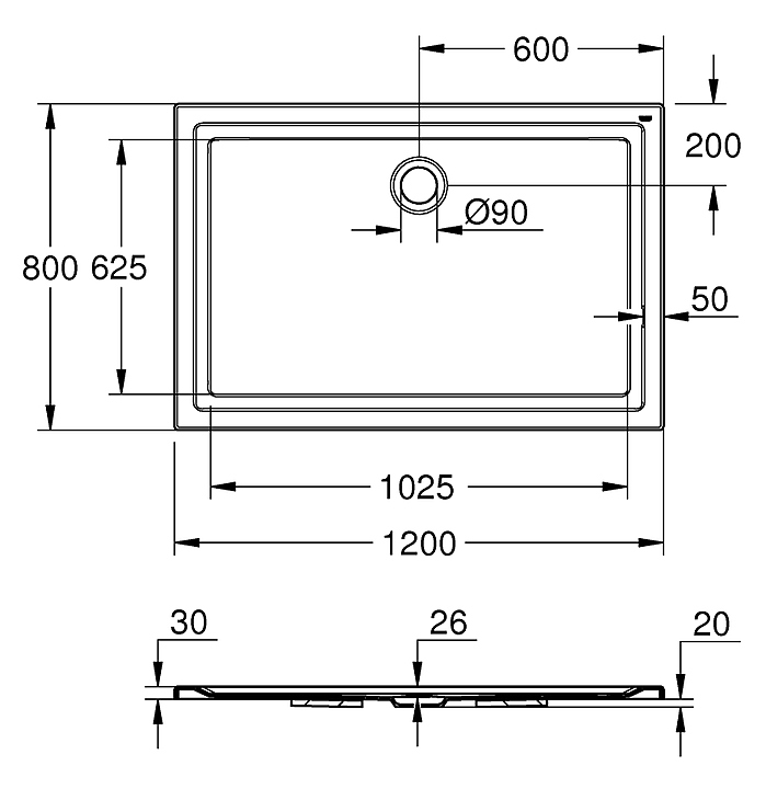 Душевой поддон Grohe 39305000Gr 80x120 см акрил
