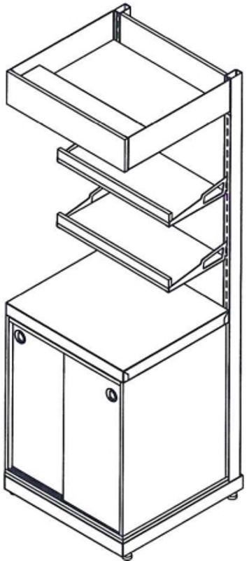 Стеллаж пристенный Carboma S6-20 10 со сплошными деревянными полками предназначен для демонстрации хлеба, батонов и других хлебобулочных изделий в магазинах, супермаркетах, кофейнях, а также на предприятиях общественного питания и торговли. Модель оснащена 2 полками, нейтральной тумбой и козырьком с освещением. Изделие выполнено из МДФ, плинтуса - из нержавеющей стали, стойки обшиты выкрашенной в серый цвет сталью. Комплектация: