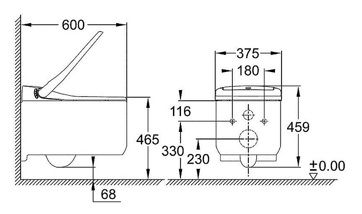 Унитаз-биде подвесной с бачком и инсталляцией Grohe Sensia Arena 39 354 SH1 выполнен в современном стиле. В этом инновационном продукте продумано все до мелочей, чтобы в любой момент времени гарантировать абсолютную чистоту. Благодаря подвесной конструкции унитаз-биде не занимает много места в помещении, а свободное пространство под чашей делает уборку в ванной комнате гораздо легче. Безободковое исполнение позволяет предотвратить скопление бактерий и грязи на внутренней поверхности чаши и обеспечивает ее чистоту и гигиеничность использования. Антигрязевое покрытие позволяет легко очистить внутреннюю поверхность унитаза-биде. Накладная панель Arena Cosmopolitan изготовлена из ABS-пластика, сиденье и крышка - из дюропласта. Комплектация: