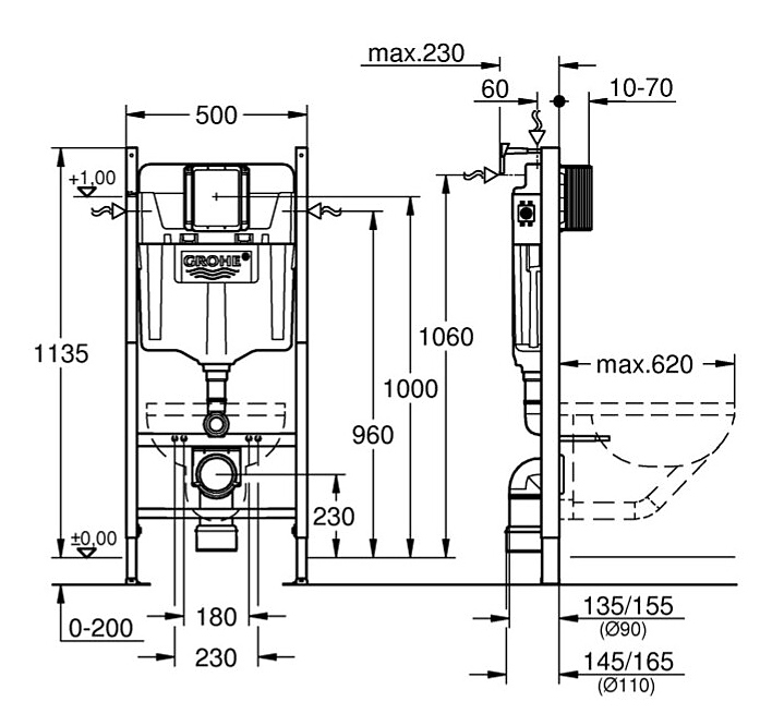 Унитаз подвесной с бачком и инсталляцией Grohe 39117000Gr