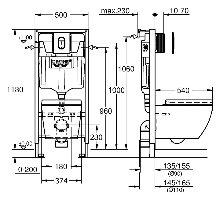 Унитаз подвесной с бачком и инсталляцией GROHE 39536000Gr выполнен в современном стиле. Благодаря подвесной конструкции унитаз не занимает много места в помещении, а свободное пространство под чашей делает уборку в ванной комнате гораздо легче. Водосберегающая конструкция с регулируемой системой смыва обеспечивает экономный расход воды. Накладная панель Arena Cosmo выполнена из ABS-пластика, арматурная группа изготовлена из нержавеющей стали, унитаз - из санитарной керамики, сиденье с крышкой - из дюропласта. Комплектация: