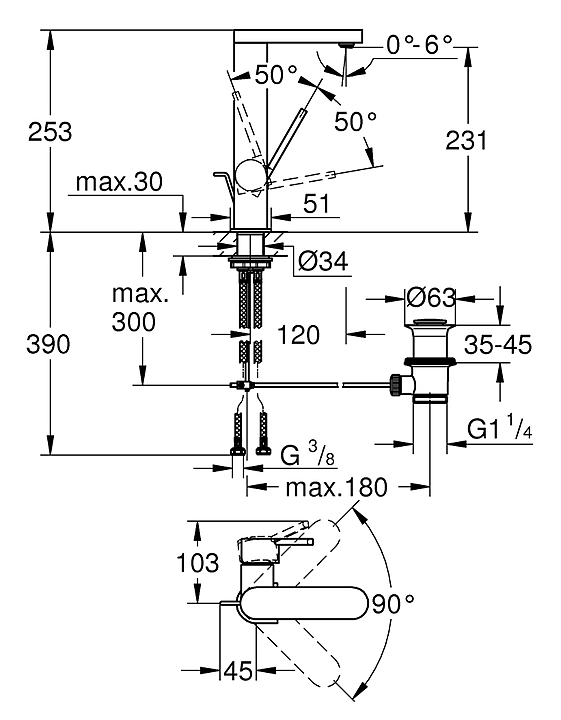 Смеситель однорычажный для раковины Grohe Plus 1/2″ L-SIZE 23851003 предназначен для использования в кухонных и ванных помещениях для подачи горячей и холодной воды. Серия GROHE PLUS воплощает собой точность, надежность и стабильность в работе в сочетании с функциями, обеспечивающими комфорт, удобство и уверенное управление. Поворотный излив повышает уровень комфорта и свободы движений. Корпус выполнен из композитного полимера с хромированным покрытием StarLight, устойчивым к царапинам и обеспечивающим блеск на много лет. Рычаг изготовлен из металла. Особенности: