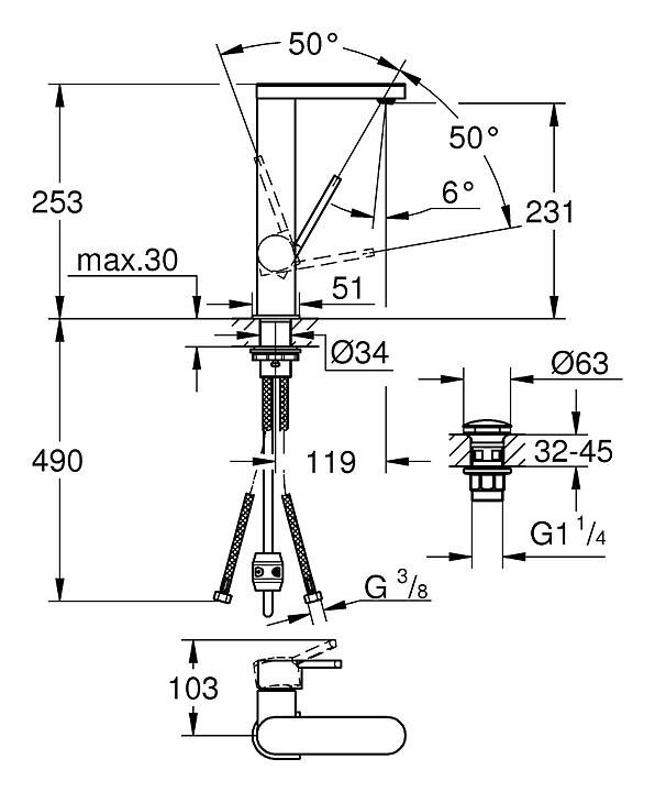 Смеситель однорычажный для раковины Grohe Plus 1/2″ L-SIZE 23844003 предназначен для использования в кухонных и ванных помещениях для подачи горячей и холодной воды. Серия GROHE PLUS воплощает собой точность, надежность и стабильность в работе в сочетании с функциями, обеспечивающими комфорт, удобство и уверенное управление. Выдвижной излив повышает уровень комфорта и свободы движений. Корпус выполнен из композитного полимера с хромированным покрытием StarLight, устойчивым к царапинам и обеспечивающим блеск на много лет. Рычаг изготовлен из металла. Особенности: