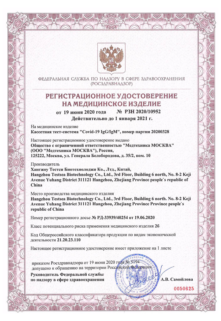 Экспресс-тест на COVID-19 и наличие антител Testsealabs IgG/IgM С РУ