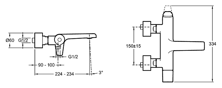 Смеситель для ванны и душа настенный Jacob Delafon AVID E97369-CP