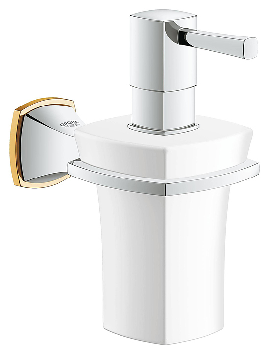 Дозатор жидкого мыла с держателем Grohe Grandera 40627IG0 хром/золото