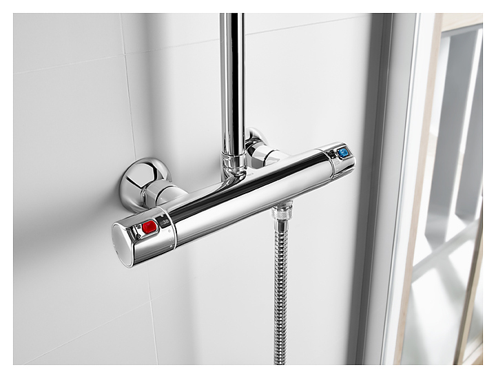 Душевая стойка Roca VICTORIA-T 75A9718C00 используется в ванных комнатах. Модель оснащена круглым верхним душем и термостатическим смесителем. Душевая стойка крепится к стене. Особенности: