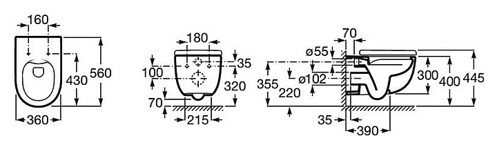 Унитаз подвесной ROCA Meridian 734624L000 выполнен в современном стиле. Благодаря подвесной конструкции унитаз не занимает много места в помещении, а свободное пространство под чашей делает уборку в ванной комнате гораздо легче. Безободковое исполнение позволяет предотвратить скопление бактерий и грязи на внутренней поверхности чаши и обеспечивает ее чистоту и гигиеничность использования. Душевой слив обеспечивает максимально эффективное удаление загрязнений, а также экономию воды и времени. Изделие выполнено из санфарфора, который обладает повышенной прочностью и устойчивостью к негативным внешним факторам, а так же долгое время сохраняет идеальную белизну и не впитывает запахи и грязь. Внимание! Унитаз приобретается только в комплекте с системой инсталляции Duplo WC 7890090020 и сиденьем Meridian 8012A000B или Meridian 78012A2004 Soft Close. В комплект поставки входят крепления для установки. Особенности: