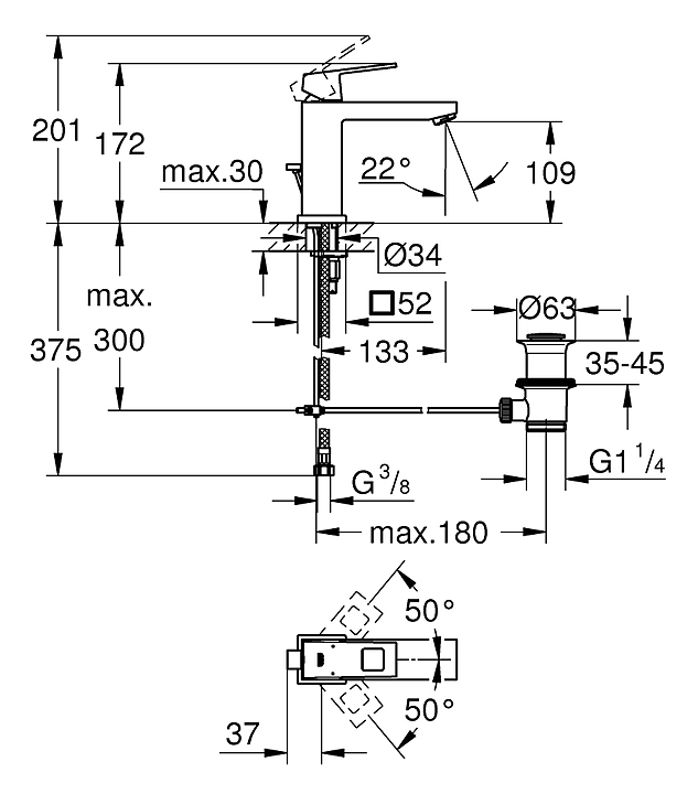 Смеситель Grohe Eurocube DN 15 M-SIZE 23445000