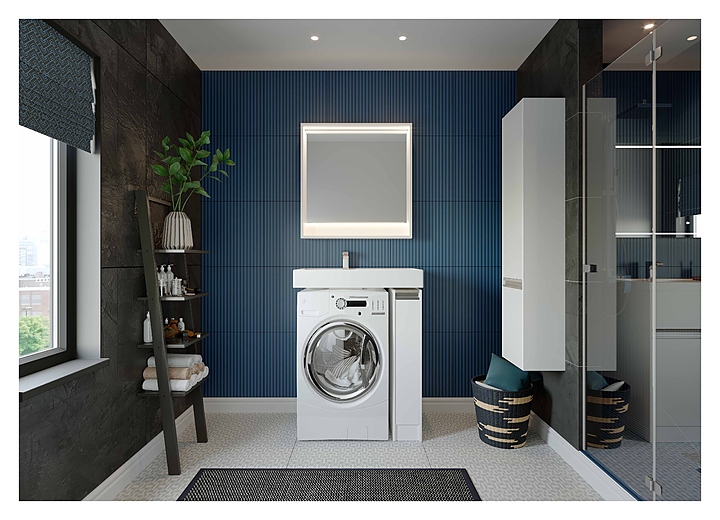 Тумба AQUATON Лондри 20 1A236101LH010 под стиральную машину выполнена в современном стиле. Модель оснащена 1 выдвижным ящиком с удобной профильной хромированной ручкой, с вставкой из влагостойкой ламинированной плиты благородного цвета дуб наварра и состоит из двух отделений. Изделие выполнено из влагостойкой ламинированной плиты и окрашено в белоснежный цвет с высокой степенью глянца полиэфирной краской ультрафиолетового отверждения, которая обеспечивает изделию привлекательный внешний вид, а также износостойкость и долговечность. Тумба используется вместе с раковиной РЕЙН 80 1A72113KRW010. Особенности: