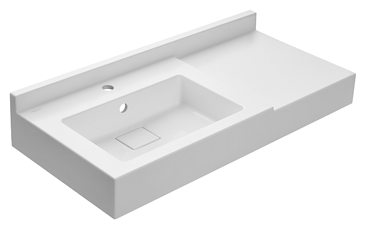 Раковина AQUATON Сакура 100 1A71973KSK010 выполнена в современном стиле. Встраиваемая конструкция позволяет экономить место в ванной комнате для хранения туалетных принадлежностей. Модель оснащена широкой задней и боковой поверхностями, на которых можно размещать необходимые аксессуары для ежедневного использования. Возвышенность на задней части раковины обеспечивает лучшее прилегание к зеркалу для облегчения ухода. Изделие выполнено из литого мрамора, состоящего из природного молотого мрамора на 80% и полиэфирной смолы на 20%, с добавлением специальных пигментов и красителей, обладающего повышенной прочностью и устойчивостью к негативным внешним факторам. Раковина используется вместе с тумбой Сакура 100 1A234901SKW80. Смеситель в комплект поставки не входит и приобретается отдельно. Комплектация:
