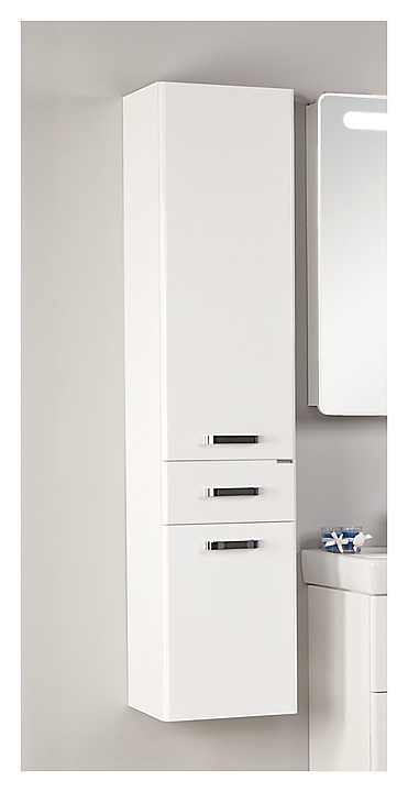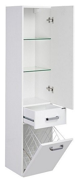 Подвесной пенал AQUATON Америна 1A135203AM010 выполнен в современном стиле и благодаря лаконичному дизайну отлично дополнит интерьер любой ванной комнаты. Благодаря подвесной конструкции модель не занимает много места, что позволяет экономить пространство в небольшой ванной комнате, а также облегчает уборку. Модель оснащена одной дверью, за которой находятся две стеклянные полки, регулируемые по высоте, одним небольшим ящиком и ящиком для белья в нижней части пенала. Изделие выполнено из влагостойкой ламинированной плиты и высококачественной МДФ, окрашено в белый цвет с высокой степенью глянца полиэфирной краской ультрафиолетового отверждения, которая обеспечивает изделию привлекательный внешний вид, а также износостойкость и долговечность. Для установки понадобится набор крепежей для монтажа на стену. Комплектация: