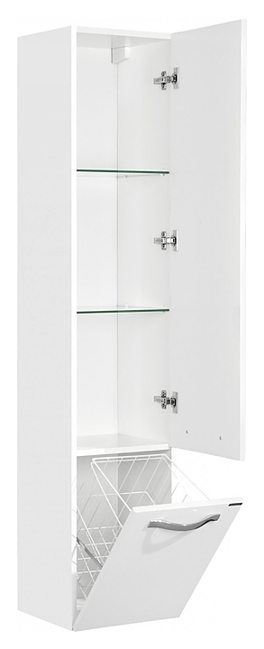 Подвесной пенал AQUATON Ария М 1A124403AA010 выполнен в современном стиле и благодаря лаконичному дизайну отлично дополнит интерьер любой ванной комнаты. Благодаря подвесной конструкции модель не занимает много места, что позволяет экономить пространство в небольшой ванной комнате, а также облегчает уборку. Модель оснащена одной дверью, за которой находятся две стеклянные полки, регулируемые по высоте, на которых можно разместить все необходимые в ванной комнате принадлежности и откидным ящиком для белья в нижней части пенала. Изделие выполнено из влагостойкой ламинированной плиты и высококачественной МДФ, окрашено в белый цвет с высокой степенью глянца полиэфирной краской ультрафиолетового отверждения, которая обеспечивает изделию привлекательный внешний вид, а также износостойкость и долговечность. Для установки понадобится набор крепежей для монтажа на стену. Комплектация: