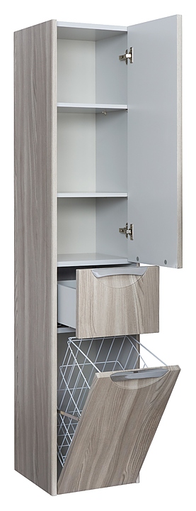 Подвесной пенал AQUATON Сильва 1A215603SIW6R выполнен в современном стиле и отлично дополнит интерьер любой ванной комнаты. Благодаря подвесной конструкции модель не занимает много места, что позволяет экономить пространство в небольшой ванной комнате, а также облегчает уборку. Модель оснащена одной дверью, за которой находятся две полки, регулируемые по высоте, одним небольшим ящиком и откидным ящиком с корзиной для белья в нижней части пенала. Изделие выполнено из влагостойкой ЛДСП и высококачественной МДФ в матовой пленке цвета дуб фьорд, которая обеспечивает изделию привлекательный внешний вид, а также износостойкость и долговечность. Комплектация: