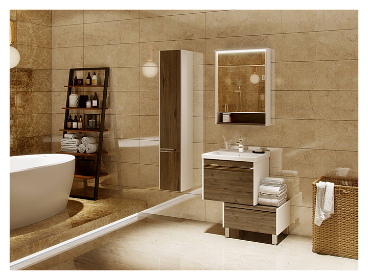 Подвесной пенал AQUATON Капри 1A230503KPDBL выполнен в современном стиле и отлично дополнит интерьер любой ванной комнаты. Благодаря подвесной конструкции модель не занимает много места, что позволяет экономить пространство в небольшой ванной комнате, а также облегчает уборку. Модель оснащена двумя дверями, за которыми находятся регулируемые стеклянные полки и открываются с помощью профильных хромированных ручек. Корпус изделия выполнен из влагостойкой ЛДСП и окрашен в белый цвет, а фасады из ВЛДСП окрашены в цвет таксония темная, что обеспечивает изделию привлекательный внешний вид, а также износостойкость и долговечность. Комплектация: