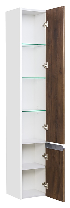 Подвесной пенал AQUATON Капри 1A230503KPDBR выполнен в современном стиле и отлично дополнит интерьер любой ванной комнаты. Благодаря подвесной конструкции модель не занимает много места, что позволяет экономить пространство в небольшой ванной комнате, а также облегчает уборку. Модель оснащена двумя дверями, за которыми находятся регулируемые стеклянные полки и открываются с помощью профильных хромированных ручек. Корпус изделия выполнен из влагостойкой ЛДСП и окрашен в белый цвет, а фасады из ВЛДСП окрашены в цвет таксония темная, что обеспечивает изделию привлекательный внешний вид, а также износостойкость и долговечность. Комплектация: