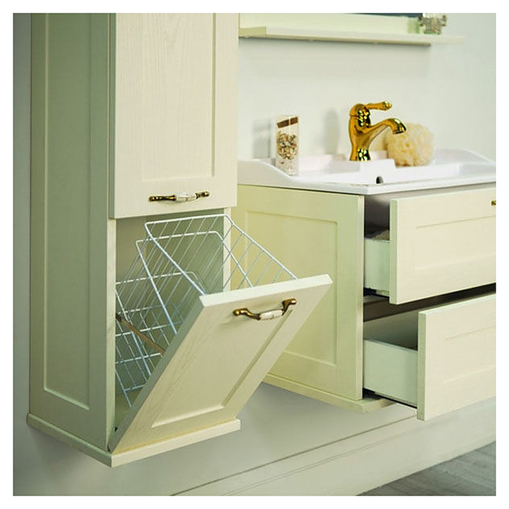 Подвесной пенал AQUATON Леон 1A186503LBPR0 выполнен в классическом стиле. Благодаря подвесной конструкции модель не занимает много места, что позволяет экономить пространство в небольшой ванной комнате, а также облегчает уборку. Модель оснащена одной дверью, за которой находятся полки для необходимых в ванной комнате принадлежностей, откидным ящиком для белья в нижней части пенала и ручками с цветочным орнаментом. Изделие выполнено из высококачественной МДФ покрытой матовой плёнкой в теплом цвете дуб бежевый, которая обеспечивает изделию привлекательный внешний вид, а также износостойкость и долговечность. Для установки понадобится набор крепежей для монтажа на стену. Комплектация: