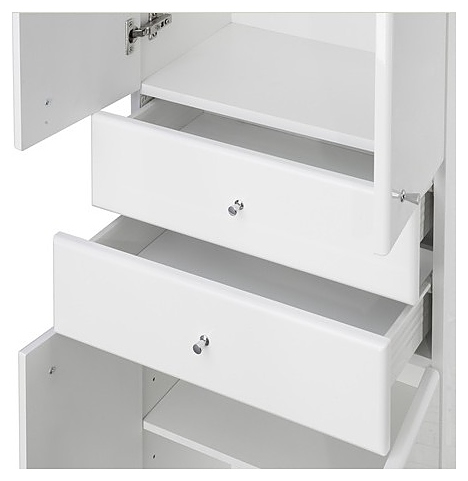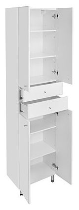 Напольный пенал двустворчатый AQUATON Симпл 1A122303SL010 выполнен в современном стиле и благодаря лаконичному дизайну отлично дополнит интерьер любой ванной комнаты. Напольная конструкция обеспечивает легкий монтаж и не требует специального ремонта в помещении. Модель оснащена четырьмя дверками, за которыми находятся вместительные полки для необходимых в ванной комнате принадлежностей и двумя небольшими выдвижными ящиками для хранения мелочей. Изделие выполнено из влагостойкой ламинированной плиты и высококачественной МДФ, окрашено в белый цвет с высокой степенью глянца полиэфирной краской ультрафиолетового отверждения, которая обеспечивает изделию привлекательный внешний вид, а также износостойкость и долговечность. Комплектация: