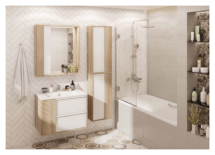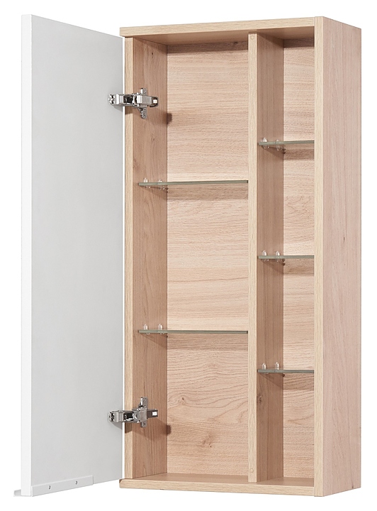 Шкафчик AQUATON Бостон 1A239903BN010 выполнен в современном стиле и отлично дополнит интерьер любой ванной комнаты. Благодаря подвесной конструкции модель не занимает много места, что позволяет экономить пространство в небольшой ванной комнате, а также облегчает уборку. Модель оснащена одной дверкой ручкой, за которой расположены регулируемые по высоте полки, где удобно разместить все необходимые в ванной комнате принадлежности. Изделие выполнено из влагостойкой ламинированной плиты в цвете дуб эврика, а фасад окрашен в белый цвет с высокой степенью глянца полиэфирной краской ультрафиолетового отверждения, накладка выполнена в цвете дуб эврика, что обеспечивает изделию привлекательный внешний вид, а также износостойкость и долговечность. Для установки понадобится набор крепежей для монтажа на стену. Комплектация: