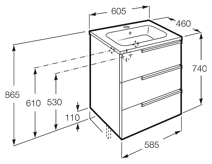 Тумба под раковину Roca Victoria Nord Ice Edition ZRU9302834 60 см 3 ящика