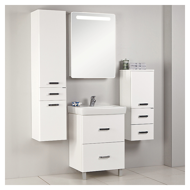 Шкафчик AQUATON Америна 1A137803AM010 выполнен в современном стиле и отлично дополнит интерьер любой ванной комнаты. Благодаря подвесной конструкции модель не занимает много места, что позволяет экономить пространство в небольшой ванной комнате, а также облегчает уборку. Модель оснащена одной дверкой ручкой, за которой расположена регулируемая по высоте полка, где удобно разместить все необходимые в ванной комнате принадлежности и двумя выдвижными ящиками с ручками для мелочей. Изделие выполнено из влагостойкой ламинированной плиты и высококачественной МДФ, окрашено в белый цвет с высокой степенью глянца полиэфирной краской ультрафиолетового отверждения, что обеспечивает изделию привлекательный внешний вид, а также износостойкость и долговечность. Для установки понадобится набор крепежей для монтажа на стену. Комплектация: