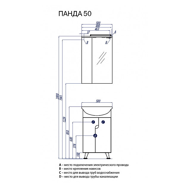 Шкаф зеркальный AQUATON Панда 50 1A007402PD01L