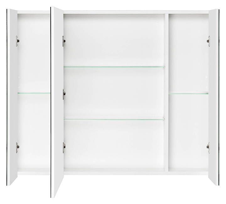 Зеркальный шкаф AQUATON Беверли 1A237202BV010 выпонен в современном и лаконичном стиле и отлично дополнит интерьер любой ванной комнаты. Благодаря подвесной конструкции модель не занимает много места, что позволяет экономить пространство в небольшой ванной комнате, а также облегчает уборку. Модель оснащена тремя распашными зеркальными дверцами без лицевой фурнитуры, четырьмя регулируемыми стеклянными полками за зеркальными фасадами и открытой полкой в нижней части шкафа. Корпус выполнен из высококачественной МДФ и покрыт белоснежной полиэфирной краской ультрафиолетового отверждения с высокой степенью глянца, а фасад - из влагостойкой ЛДСП с зеркальной отделкой, что обеспечивает изделию привлекательный внешний вид, а также износостойкость и долговечность. Для установки понадобится набор крепежей для монтажа на стену. Комплектация: