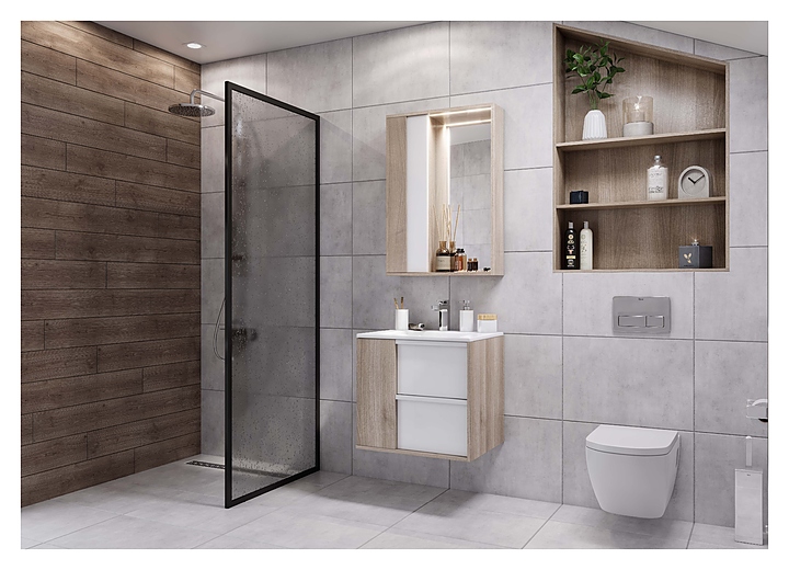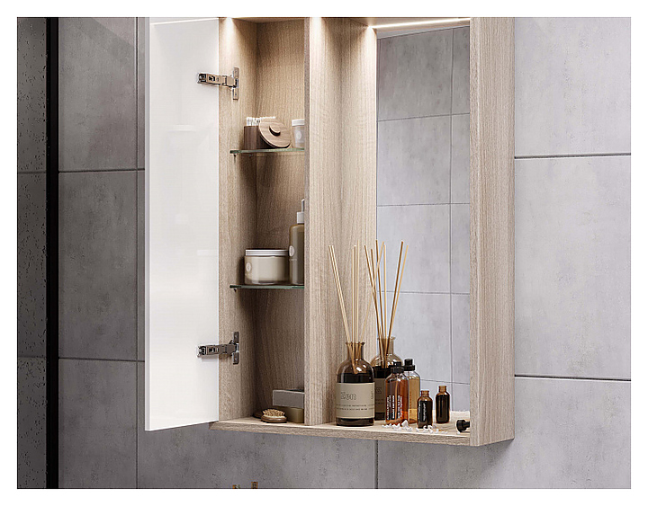 Зеркальный шкаф AQUATON Бостон 1A240202BN010 выпонен в современном и лаконичном стиле и отлично дополнит интерьер любой ванной комнаты. Благодаря подвесной конструкции модель не занимает много места, что позволяет экономить пространство в небольшой ванной комнате, а также облегчает уборку. Модель оснащена слева шкафчиком для хранения с двумя регулируемыми по высоте стеклянными полками, а сверху LED-подсветкой, обеспечивающей равномерное и красивое освещение зеркала и внутреннего отделения. Корпус выполнен из влагостойкой ЛДСП в элегантной декоративной отделке дуб эврика, а комбинированный фасад, расположенный слева, окрашен в белоснежный глянцевый цвет и включает дополнительную накладку, выполненную в цвете корпуса, что обеспечивает изделию привлекательный внешний вид, а также износостойкость и долговечность. Для установки понадобится набор крепежей для монтажа на стену. Комплектация:
