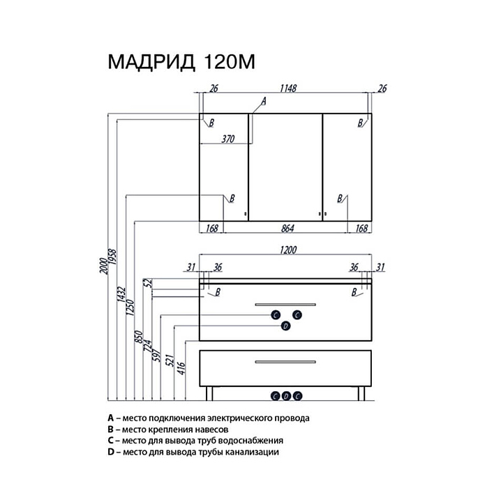 Шкаф зеркальный AQUATON Мадрид 120 1A113402MA010