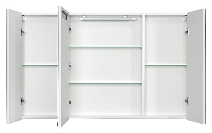 Зеркальный шкаф AQUATON Мадрид 120 1A113402MA010 выпонен в современном и лаконичном стиле и отлично дополнит интерьер любой ванной комнаты. Благодаря подвесной конструкции модель не занимает много места, что позволяет экономить пространство в небольшой ванной комнате, а также облегчает уборку. Модель оснащена тремя распашными зеркальными дверцами без лицевой фурнитуры, четырьмя регулируемыми стеклянными полками за зеркальными фасадами и LED-подсветкой на средней секции шкафа. Корпус выполнен из влагостойкой ЛДСП и покрыт белой полиэфирной краской ультрафиолетового отверждения с высокой степенью глянца, а фасады из высококачественной МДФ с зеркальной отделкой, что обеспечивает изделию привлекательный внешний вид, а также износостойкость и долговечность. Для установки понадобится набор крепежей для монтажа на стену. Комплектация: