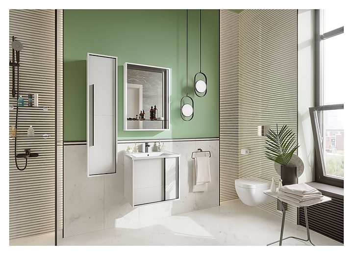 Зеркальный шкаф AQUATON Ривьера 1A238902RVX20 выпонен в современном и лаконичном стиле и отлично дополнит интерьер любой ванной комнаты. Благодаря подвесной конструкции модель не занимает много места, что позволяет экономить пространство в небольшой ванной комнате, а также облегчает уборку. Модель оснащена полкой из затемнённого стекла с фиксаторами, которые помогут избежать случайного опрокидывания,LED-светильниками в боковых стенках, обеспечивающих равномерное и красивое освещение зеркала и открытой полкой в нижней части изделия. Корпус выполнен из чёрной МДФ в белой матовой пленке, что позволяет создать яркий цветовой контраст и обеспечивает изделию привлекательный внешний вид, а также износостойкость и долговечность. Для установки понадобится набор крепежей для монтажа на стену. Комплектация: