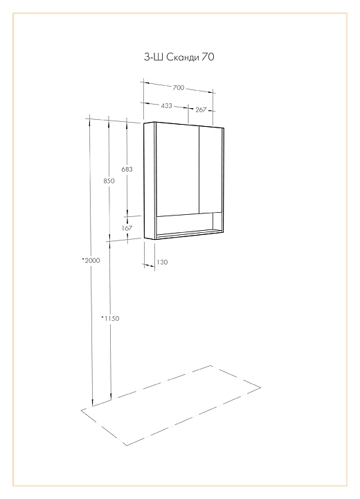 Шкаф зеркальный AQUATON Сканди 70 1A252202SDB20