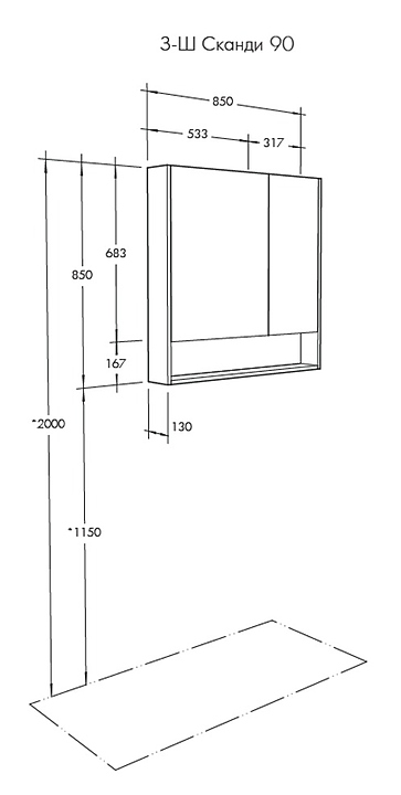 Шкаф зеркальный AQUATON Сканди 90 1A252302SDB20