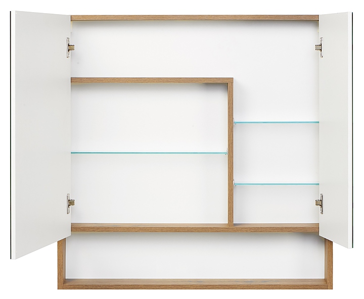 Зеркальный шкаф AQUATON Сканди 1A252302SDZ90 выпонен в современном и лаконичном стиле и отлично дополнит интерьер любой ванной комнаты. Благодаря подвесной конструкции модель не занимает много места, что позволяет экономить пространство в небольшой ванной комнате, а также облегчает уборку. Модель оснащена двумя распашными зеркальным дверцами, за которыми находятся ассиметричные секции со стеклянными полками, где удобно хранить косметические принадлежности различного объема и высоты и открытой полкой в нижней части шкафа. Корпус и зеркальный фасад выполнены из влагостойкой ЛДСП в цвете дуб рустикальный, а внутренняя отделка выполнена белой краской, предназначенной для использования во влажных помещениях, что обеспечивает изделию привлекательный внешний вид, а также износостойкость и долговечность. Для установки понадобится набор крепежей для монтажа на стену. Комплектация: