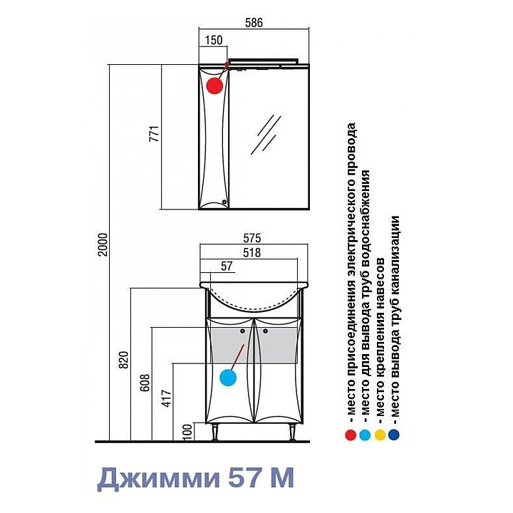 Шкаф зеркальный AQUATON Джимми 57 1A034002DJ01L