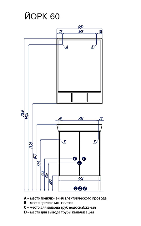 Шкаф зеркальный AQUATON Йорк 60 1A170102YOAY0