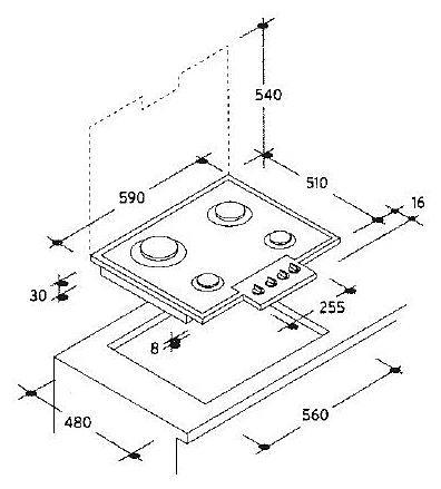 Газовая поверхность Цвет: вороненая сталь Габариты: 3х59х51 см Габариты ниши для встраивания: 8х56х48 см Автоматический электроподжиг Цельноштампованная поверхность – отсутствие каких-либо швов или винтов облегчает уход за поверхностью 2 раздельные подставки для посуды Предохранительный клапан Sicur Flame (автоматически перекрывает подачу газа, если гаснет пламя конфорки) 4 газовые конфорки