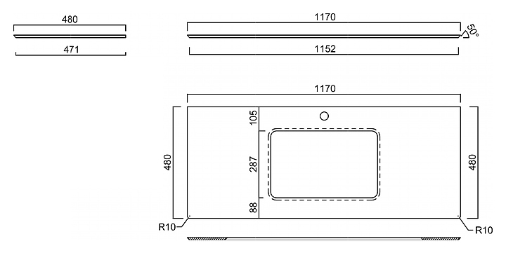 Столешница для раковины Kerama Marazzi PLAZA PL3.SG507100R\120 в классическом стиле элегантно впишется в интерьер Вашего дома. Изделие из керамогранита обладает повышенной прочностью, твердостью и долговечностью. Изделие для раковин встраиваемых снизу. Особенности: