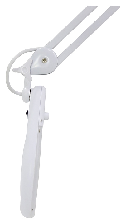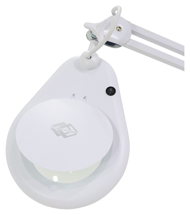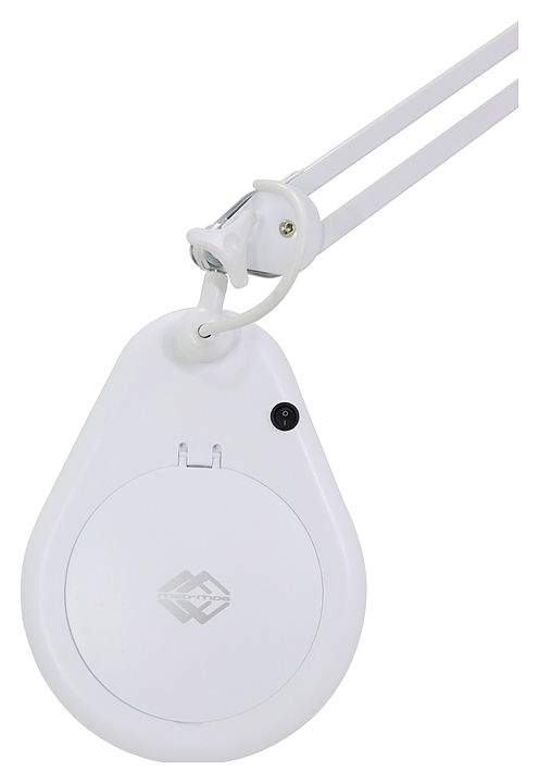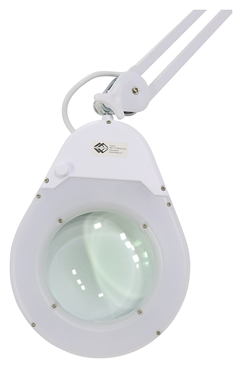 Линза выполнена из стекла, плафон - из пластика, держатель и струбцина - из стали с высококачественным полимерным покрытием. В комплект поставки входят лампа, гарантия на 12 месяцев и кронштейн крепления к столу (струбцина).