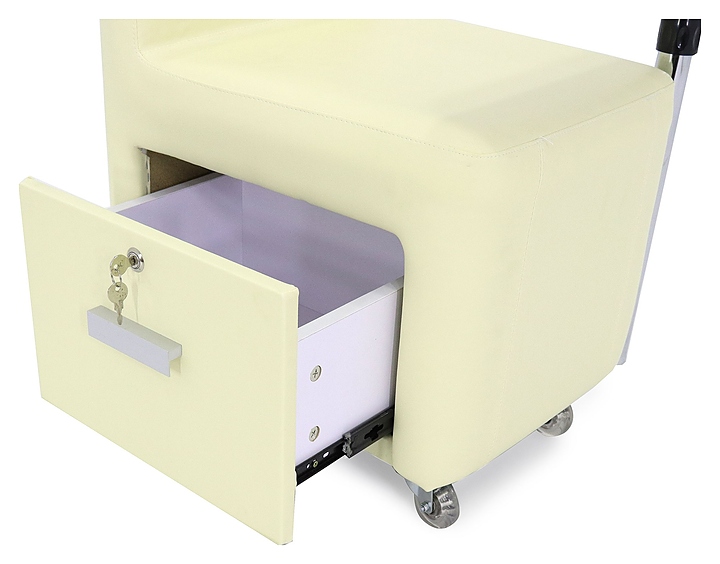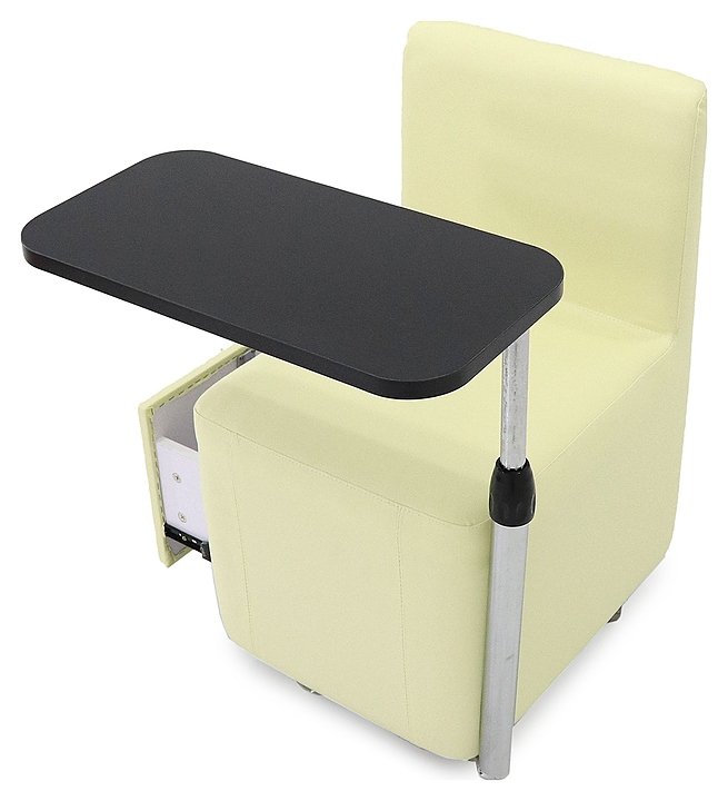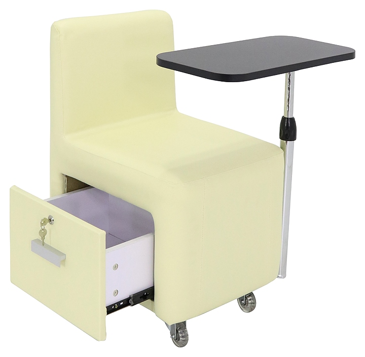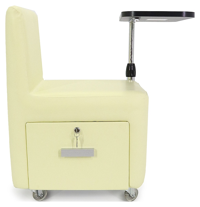 Маникюрный стул Med-Mos Felix-1 используется в маникюрных салонах и кабинетах, косметологических центрах и салонах красоты, парикмахерских, педикюрных и тату салонах для выполнения маникюра, косметологических процедур для рук или нанесения тату на руку и создания при этом максимально комфортных условий как для самого мастера, так и для клиента. Такое оборудование позволяет держать все необходимое под рукой и правильно организовать рабочее место. Модель оснащена подставкой для рук и самоориентирующимися колесиками. Каркас стула и подставка для рук выполнены из МДФ, наполнитель - из поролона, обивка - из искусственной ПВХ-кожи, ящик - из ламинированного МДФ, телескопическая стойка - из стали, опора крепления подставки для рук, опора крепления нижней части стойки к основанию стула - из стальной хромированной пластины, колеса - из прозрачного полиуретана на стальной вилке. В комплект поставки входит стул, подставка для рук, 2 ключа к замку ящика. Особенности: