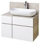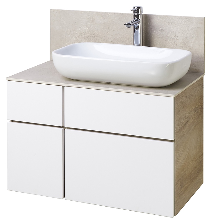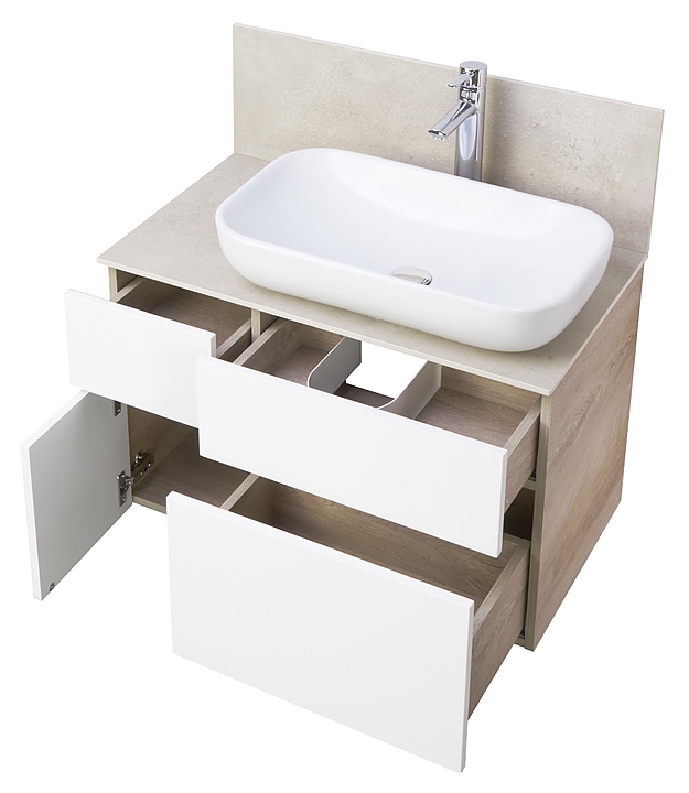 Тумба AQUATON Мишель 80 1A244501MIX40 выполнена в современном стиле. Благодаря подвесной конструкции изделие не занимает много места, а закругленные углы обеспечивают легкий уход. Модель оснащена слева небольшим выдвижным ящиком, под ним расположено отделение со створкой, а справа двумя вместительными ящиками с доводчиками. Корпус выполнен из влагостойкой ЛДСП в цвете дуб эндгрейн, а фасады из МДФ покрыты белой матовой плёнкой ультрафиолетового отверждения, что обеспечивает изделию привлекательный внешний вид, а также износостойкость и долговечность. На выбор возможно приобрести тумбу с традиционной столешницей из ВЛДСП или из керамогранита. Тумба используется вместе с раковиной Infinity 60 1AX169WBXX000. Комплектация: