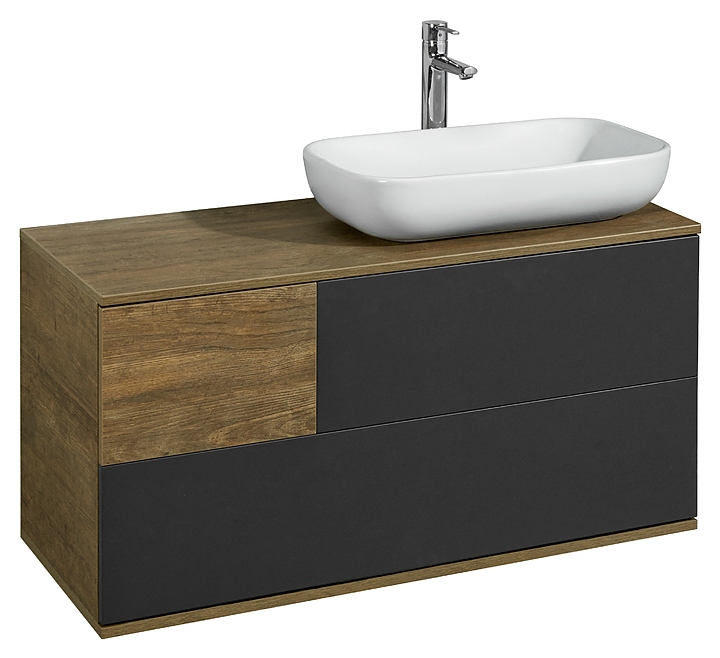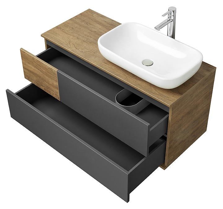 Тумба AQUATON Терра 105 1A246901TEKA0 выполнена в современном стиле. Благодаря подвесной конструкции изделие не занимает много места и обеспечивают легкую уборку в ванной комнате. Модель оснащена двумя вместительными ящиками, нижний ящик с системой организации пространства, которая препятствует смещению мелких косметических и гигиенических средств. Корпус выполнен из влагостойкой ЛДСП в цвете дуб кантри, а фасады из МДФ покрыты матовой серой плёнкой в цвете антрацит, что обеспечивает изделию привлекательный внешний вид, а также износостойкость и долговечность. Тумба используется вместе с раковиной Infinity 60 1AX169WBXX000. Особенности: