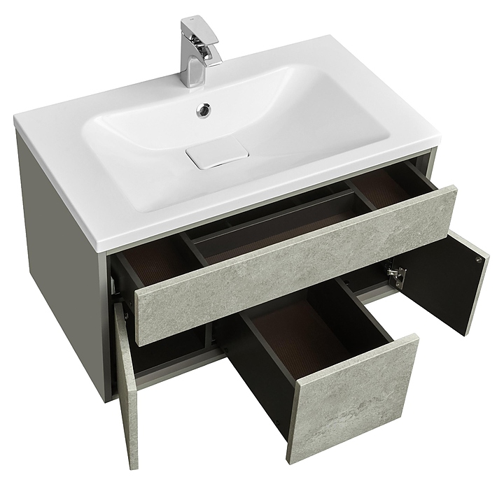 Тумба AQUATON Уэльс 100 1A207901WAC30 выполнена в современном стиле лофт. Благодаря подвесной конструкции изделие не занимает много места и обеспечивает легкую уборку в ванной комнате. Модель оснащена широким выдвижным ящиком с внутренней организацией хранения и антискользящими ковриками, глубоким выдвижным ящиком и двумя створками, что делает тумбу максимально функциональной и вместительной. Корпус изделия выполнен из влагостойкой ЛДСП, фасады из высококачественной МДФ покрыты матовой плёнкой цвета авеллино грей, а внутренняя отделка в цвете тёмный шоколад, что обеспечивает изделию привлекательный внешний вид, а также износостойкость и долговечность. Тумба используется вместе с раковиной Брук 100 1A71333KBC010. Комплектация: